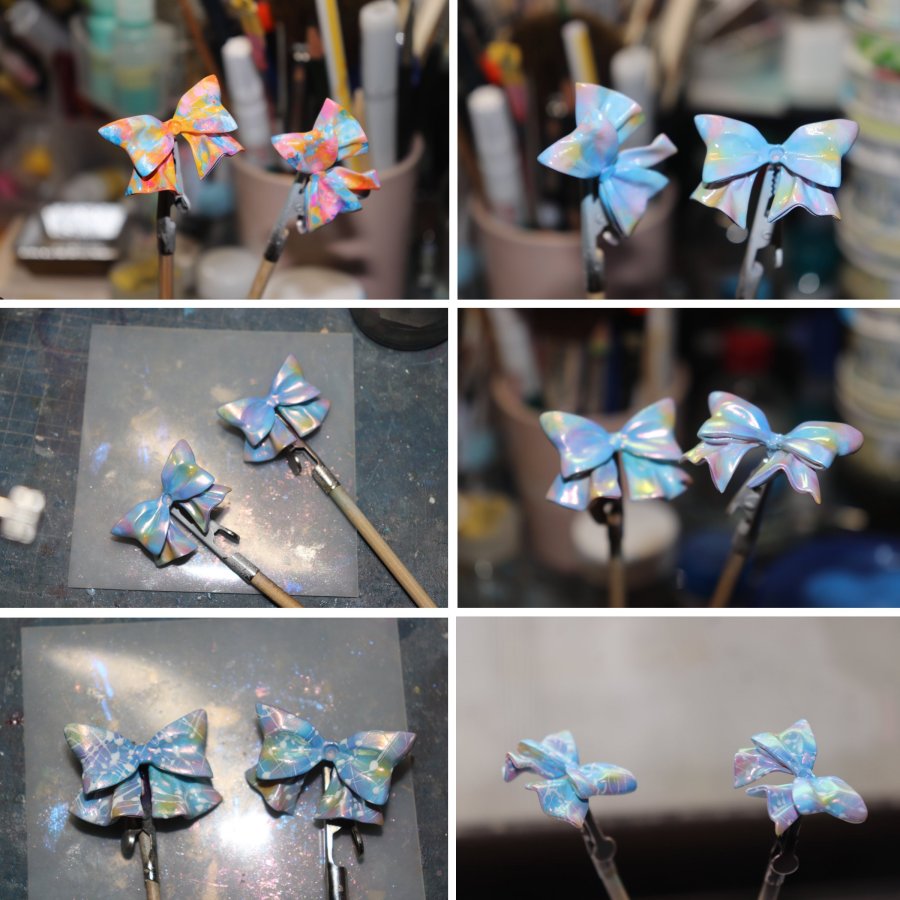コメント: このキットは挑戦しても挑戦しても完売で入手できず、やっと何とかゲットしたお宝キットです。特徴としては古のキャラながら今風のタッチで表現されたマーキュリーという印象を受けました。 それを生かすべく近未来っぽい仕上がりにしようとメタリックver.で仕上げることにしました。 ただ金属的なだけではメカっぽく固い雰囲気になってしまいそうなので、衣装は照りや輝きをメタリックにしつつ色は単一ではなく微妙な色合いを出して布っぽさを演出しました。 そのためにスカートやセーラーカラー等の青はまずマルーンを下地に塗り、それを生かしながら黒→シルバー→キャンディ塗装でクリアブルーを塗っています(画像①参照)。 金属らしく塗って然りの部分(サークレット、チョーカー等)はツルッとした質感にし、思い切り腕を振るってメタリックに仕上げました(画像②参照)。 全体的にメタリック塗装になるので肌、髪等の柔らかさを感じさせたいパーツとひんぱんに仮組みし、質感のメリハリを確認しました(画像③参照)。 胸や背後のリボンについては青系のオーロラっぽい色でセミグロスにしようという塗装イメージがありました。それを実現するためランダムにビビッドカラーを塗り、クリアホワイト他でオーバーコートしてパール粉で光沢を整えました。 更にホワイトで模様を入れてアクセントにしています(画像④参照)。 せっかくのセーラーマーキュリーなので“水”の要素をどこかに入れたいと考え、台座で表現することにしました。 同サイズのアクリル円板に水紋の模様の紙を挟み、更にアクリル円板にはレジンで水紋を思わせる大小の円を描き、硬化させました。円は自作のコンパスに噛ませたスポンジにレジンを付けて引きました(画像⑤参照)。 1/6スケールとしては少し大き目のキットで、目入れはそんなに難易度の高さを感じませんでした。使用塗料はタミヤエナメル、筆での描き込みに加えてエアブラシも使用しています(画像⑥参照)。 総括: 色々なモデラーが仕上げている本キットですが、この作品は一際個性的に仕上がったと思います。複数の模型展示会で展示しましたが、そこで原型を作られた方からお褒めの言葉をいただいたのが強く印象に残っています。 |